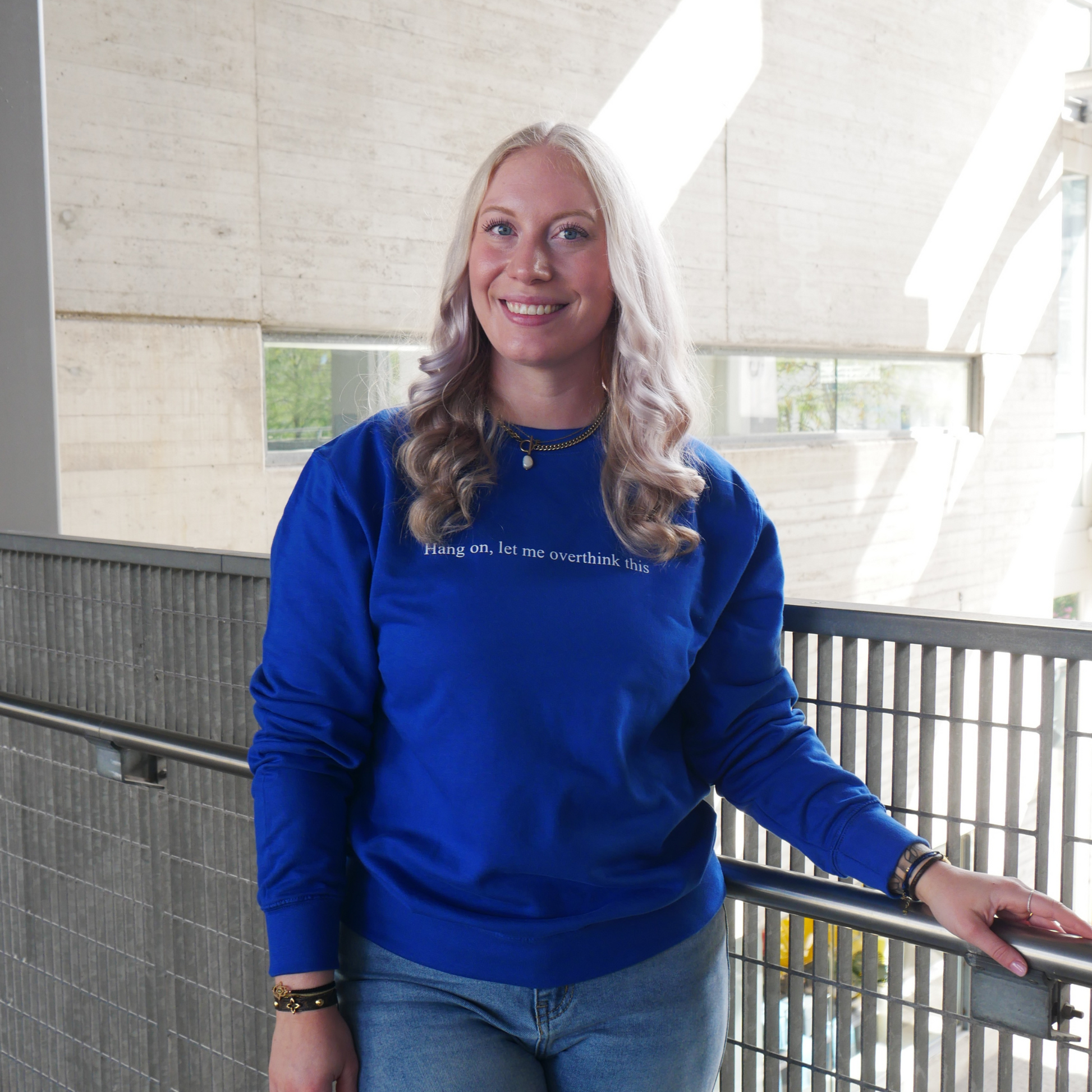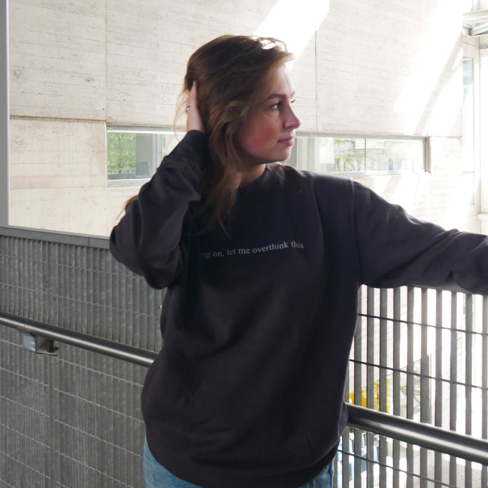 Geef je outfit een speelse twist met deze unieke sweater, voorzien van de opdruk "Hang On, Let Me Overthink This". Deze comfortabele sweater combineert stijl met een vleugje humor en is perfect voor de dromers en denkers onder ons.