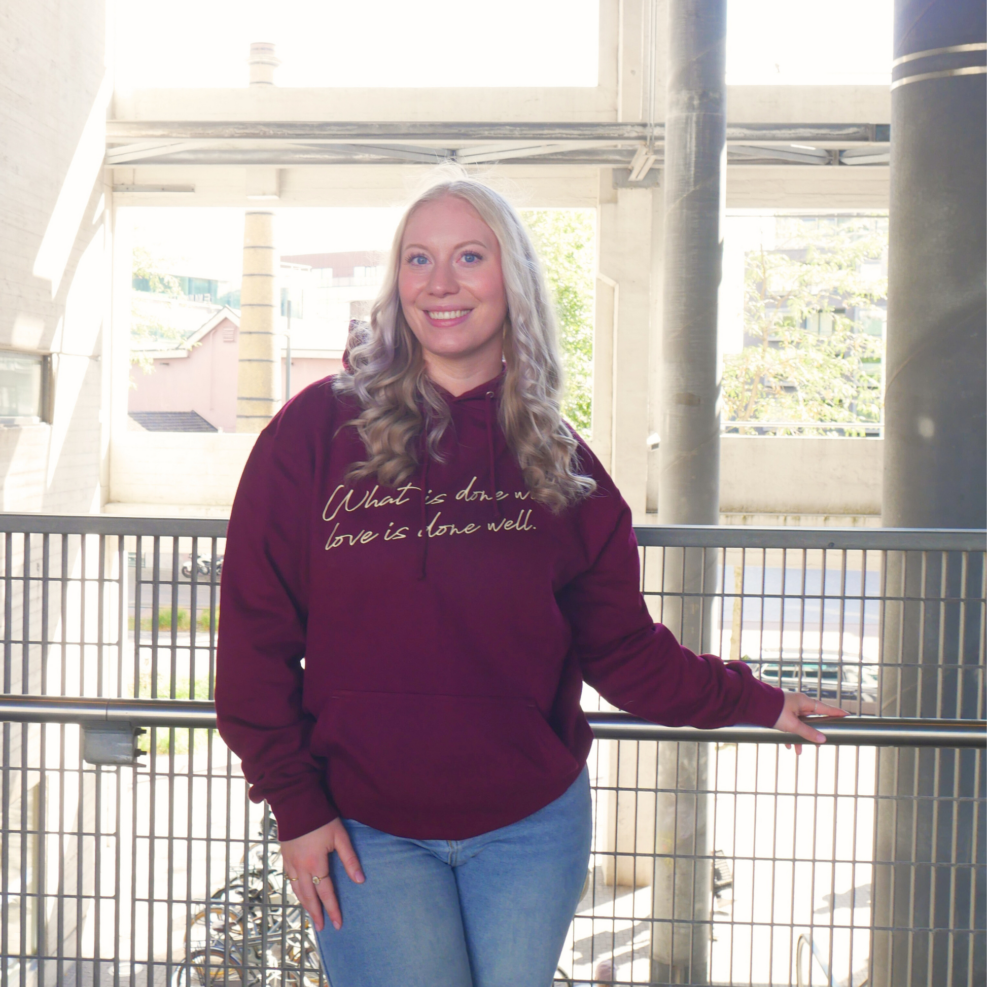 Geef je garderobe een warme en stijlvolle upgrade met deze hoodie. Het minimalistische design wordt versterkt door de inspirerende quote “What is done with love is done well”.